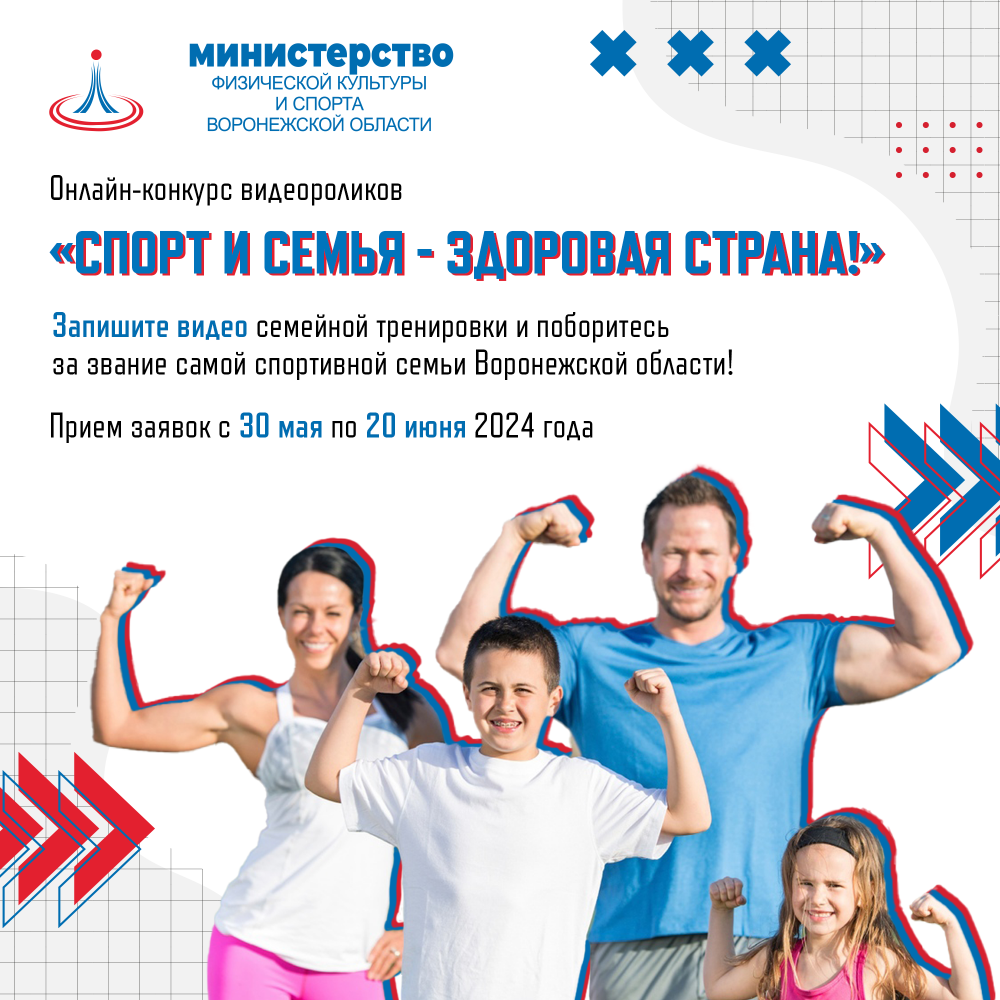 Министерство физической культуры и спорта Воронежской области приглашает принять участие в онлайн-конкурсе «Спорт и семья – здоровая страна» семьи, в которых спорт является неотъемлемой частью активной жизни и воспитания детей.